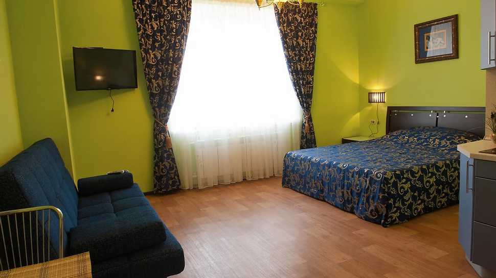 Здесь созданы все условия для комфортного проживания — есть кондиционер, телевизор, утюг. Вы можете выбрать любой из 14 доступных сейчас номеров.