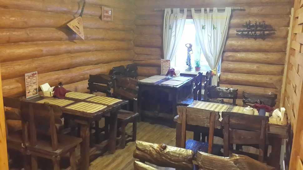На территории отеля имеются русские бани, работает трактир, предлагающий блюда русской кухни.