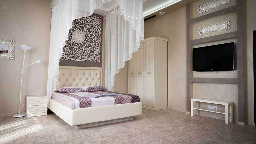 - кровати размера king-size под балдахинами;
