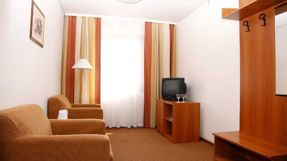 В каждом номере имеются: большая уютная кровать, стол, кресла или диван, тумбочки, шкаф, кондиционер, телевизор, мини-бар, душевая кабина, фен. Комнаты классов «Стандарт» и «Люкс» отличаются друг от друга лишь по площади. Апартаменты – это 2-х и 3-х комнатные номера с кухней и гостиной.