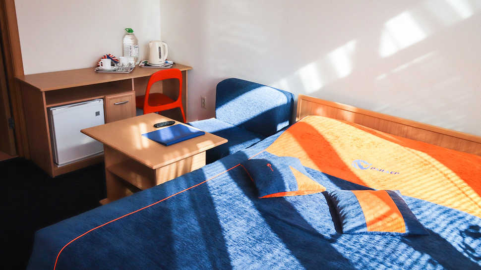 На территории горнолыжного комплекса Райдер в Миассе есть гостиница. Там возможно проживание в хостеле и в отдельных номерах. В хостеле есть номера на 16 и 6 человек. Доступно для заселения 4 отдельных номера — 2 класса Стандарт и 2 класса Джуниор.