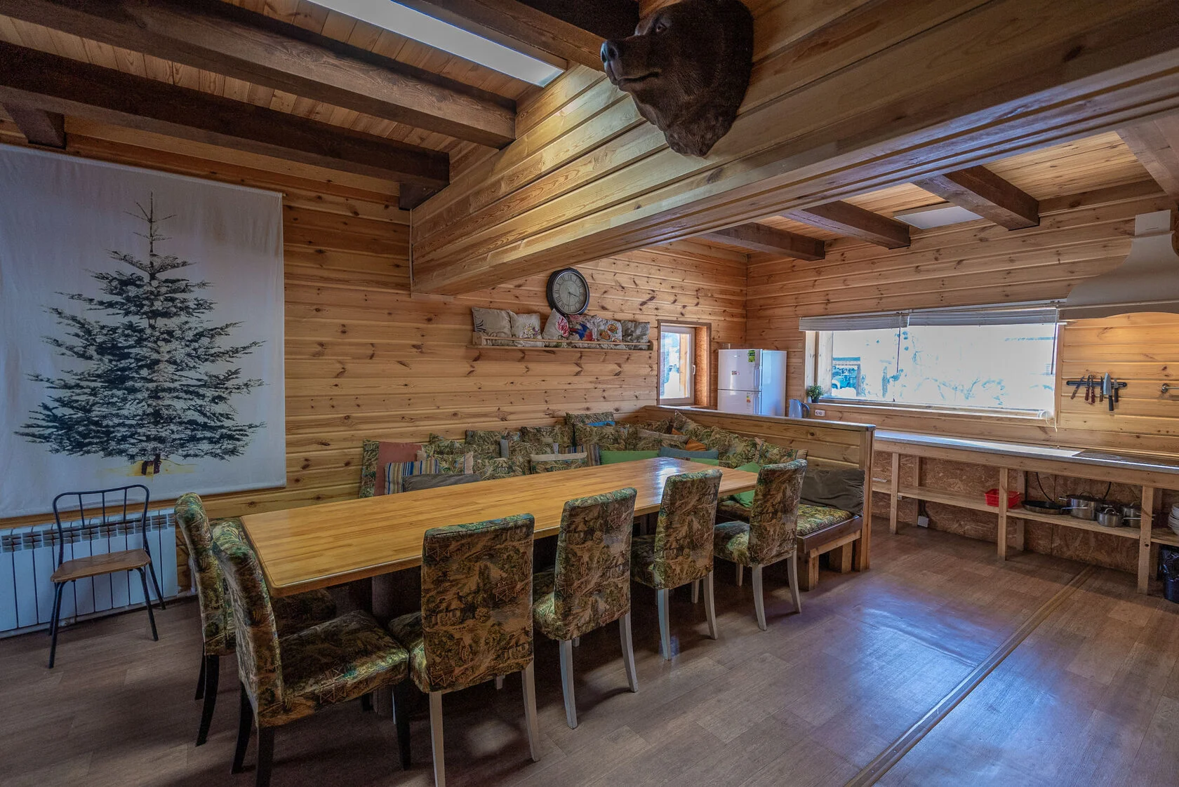 Понравился дом, большой зал с топчаном и огромным столом, с/у в каждой спальне. Хорошая, уютная баня. Каток и горка. Администрации надо поработать над магазинчиком и прокатом спорт принадлежностей!