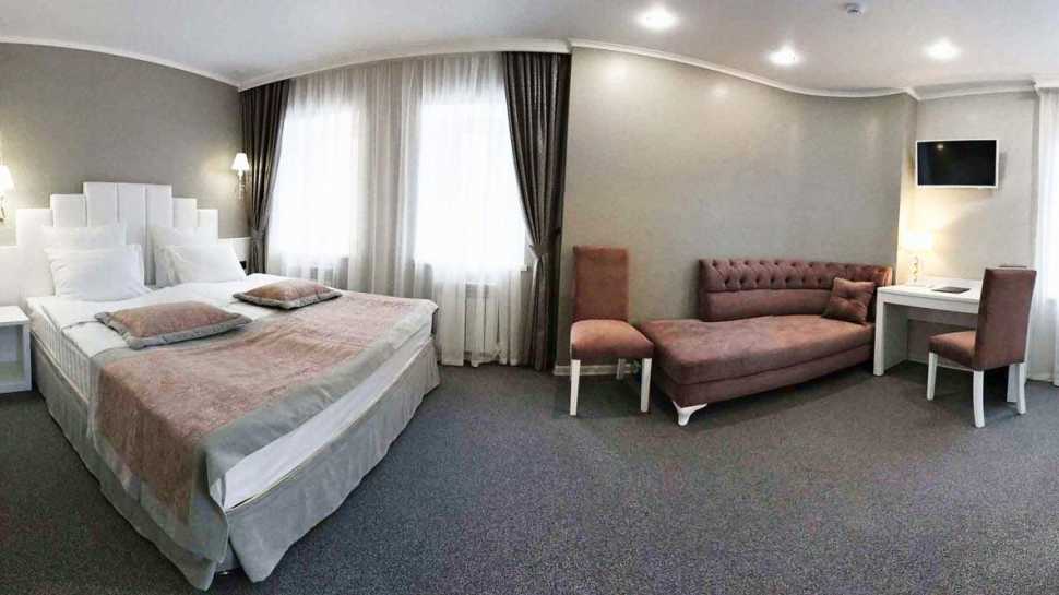 от уютных стандартов до роскошных номеров премиум класса. Есть ресторан, аква-этаж, баня, тренажернвй зал, детский бассейн, 16-метровый бассейн, игровая комната для детей.