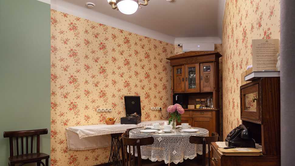 Интерьеры отеля отличаются революционной сдержанностью, строгостью линий, геометризмом, – чертами, присущими тому времени. Старинные граммофоны и радиоприемники добавляют ностальгических нот. На стенах можно увидеть портреты «дедушки» Ленина, на столах — кружевные скатерти и фарфоровые вазы с цветами.
