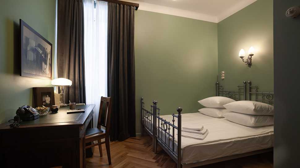 Уютные номера отличаются лаконичностью и то, что раньше казалось обыденным, теперь воспринимается как нечто особенное: стол и стулья из элитного дерева, кровать с изящными наконечниками, антикварные лампы, книжный шкаф. Отреставрированная мебель эпохи конструктивизма и винтажные детали интерьера придают гостинице особый «советский шарм» и отражают богатый исторический опыт нашей страны.