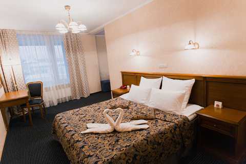 Гостиница предлагает гостям 65 просторных номеров, включая Премиум люксы, с лучшими видами на парк, 2 конференц-зала, услуги бизнес-центра, SPA-центр с бассейном, сауной и Турецкой баней, а также салон красоты «Бриз», бильярд, парковку. Ресторан «Времена года» предлагает изысканные блюда Европейской и Русской кухни, а красивая Веранда может стать отличным решением для проведения торжественных мероприятий в летнее время. Особой популярностью пользуются ВИП-зал в русском стиле, который подойдет для проведения деловых и неформальных встреч для небольших компаний. Уютный бар порадует своих гостей насыщенной коктейльной картой. Для удобства гостей в гостинице предусмотрены авиа и ж/д кассы. А памятный сувенир можно приобрести в павильоне «Сувениры» (изделия из камня, бижутерия, сувениры с символикой города).