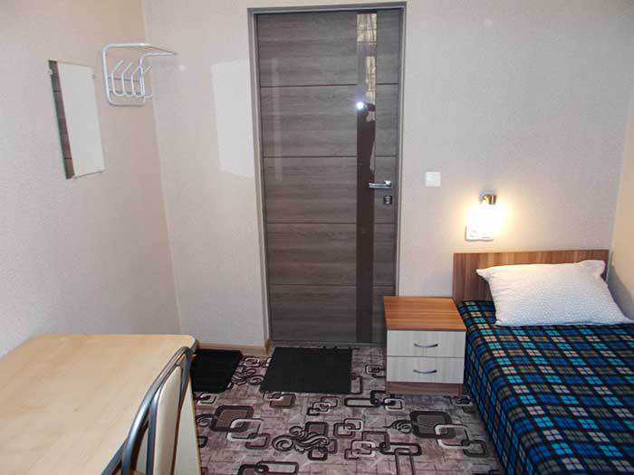 Все номера укомплектованы всем необходимым для проживания: собственный санузел с душевой кабиной, новые кровати с ортопедическими матрасами и прикроватными тумбочками, ЖК телевизор, бесплатный WI-FI, постельные принадлежности, махровые полотенца, тапочки. Для общего пользования предоставляется гладильная доска, утюг, стиральная машина.