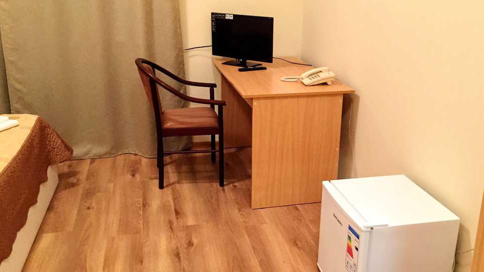 В номерах есть все необходимое для комфортного проживания наших гостей : телевизор с плоским экраном и возможностью подключения флешек, телефон, холодильник, набор полотенец, туалетно-косметические принадлежности, фен и высокоскоростной бесплатный WI-FI!