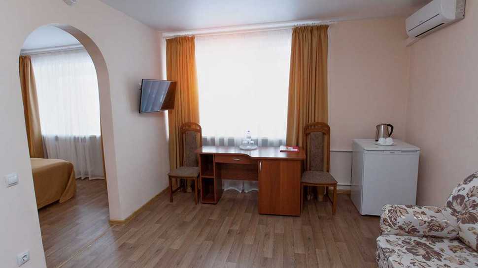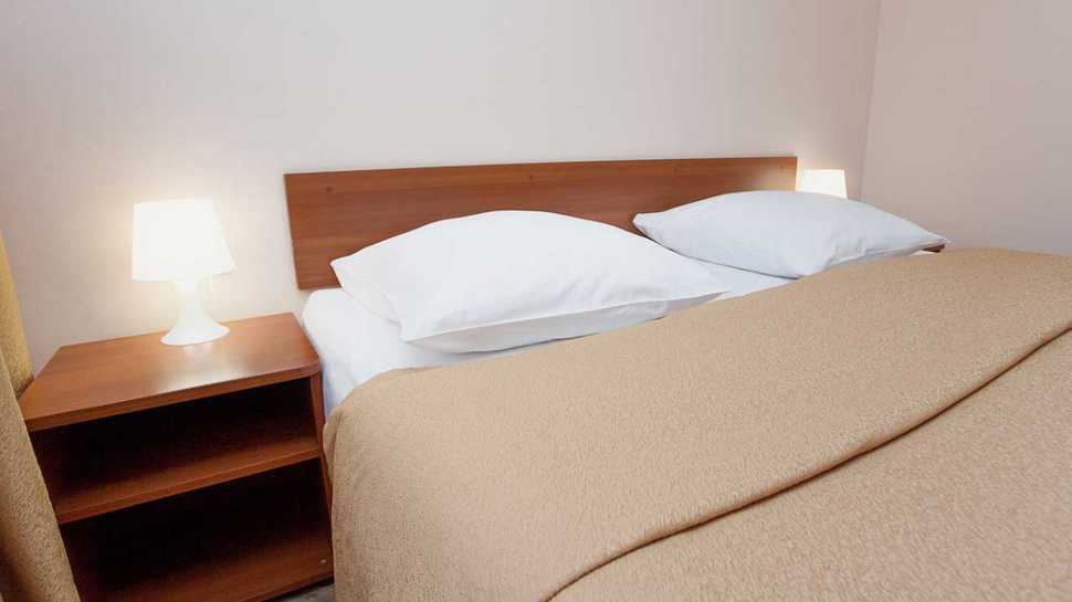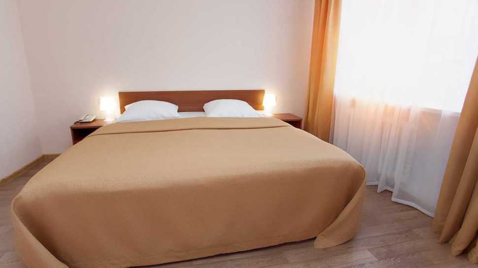 - Одно- и двухкомнатные номера для проживания вдвоем, меблированные двуспальными и односпальными кроватями;